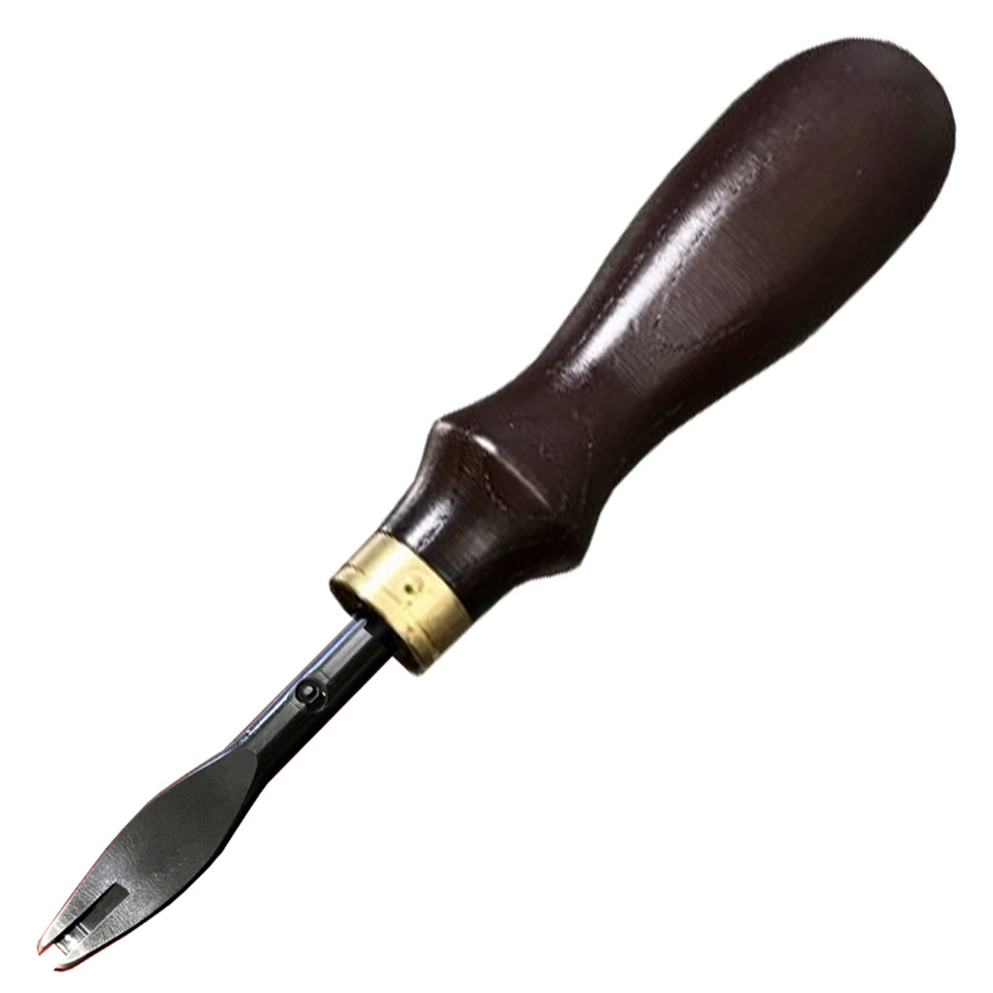 Bevel leather edges with this special leather edger from Oka, a premium leathercraft tool manufacturer, to give your leather items a clean, rounded look. This edge beveler's blade is forged from high-quality tempered steel that has been sharpened by artisans and has a rust-resistant coating, making this tool last for many years. This tool's ergonomically designed wood handle improves grip and keeps the tool from slipping out of your hands when using it. This tool also has a strong, machined brass ferrule that is secured in place with a nail, ensuring increased stability and longevity. Jeweler's rouge and sandpaper are also included in this listing to keep your tool sharp and always ready to use.