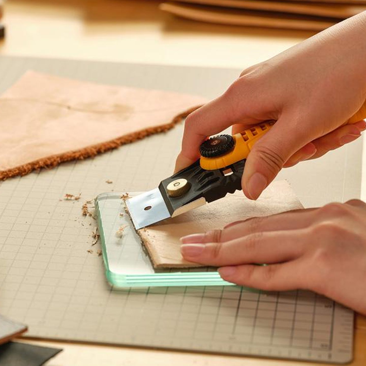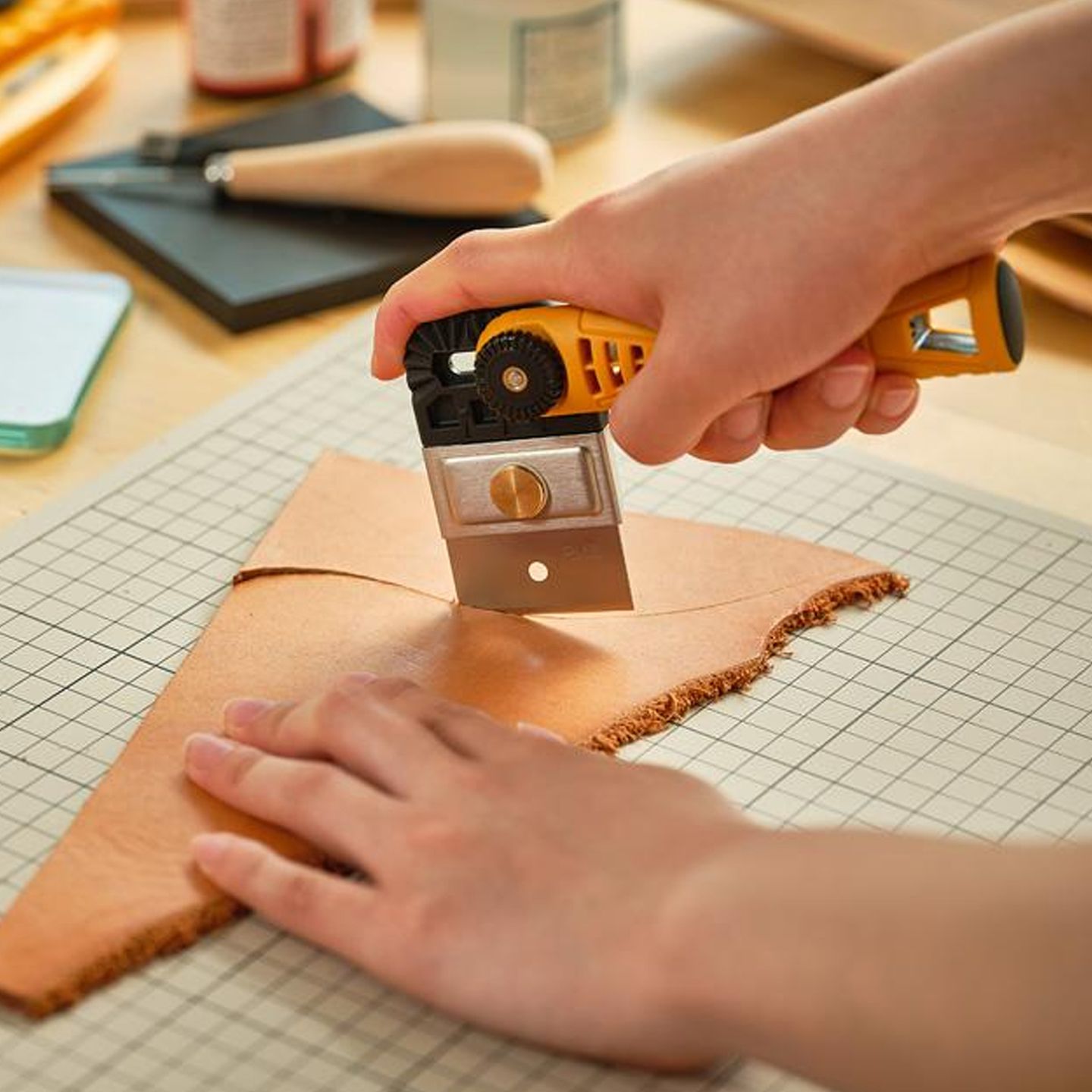 This versatile Olfa tool transforms between a scraper and knife with an adjustable head for precise leatherwork. Features a replaceable blade for long-lasting sharpness and a single-touch blade cover for safety.