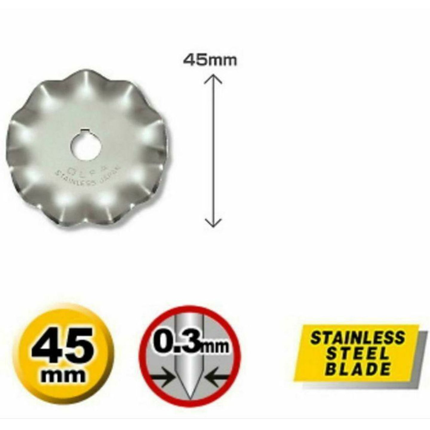 This wave shaped blade is designed for the Olfa RTY-2/DX and other Olfa 45mm rotary cutting tools.