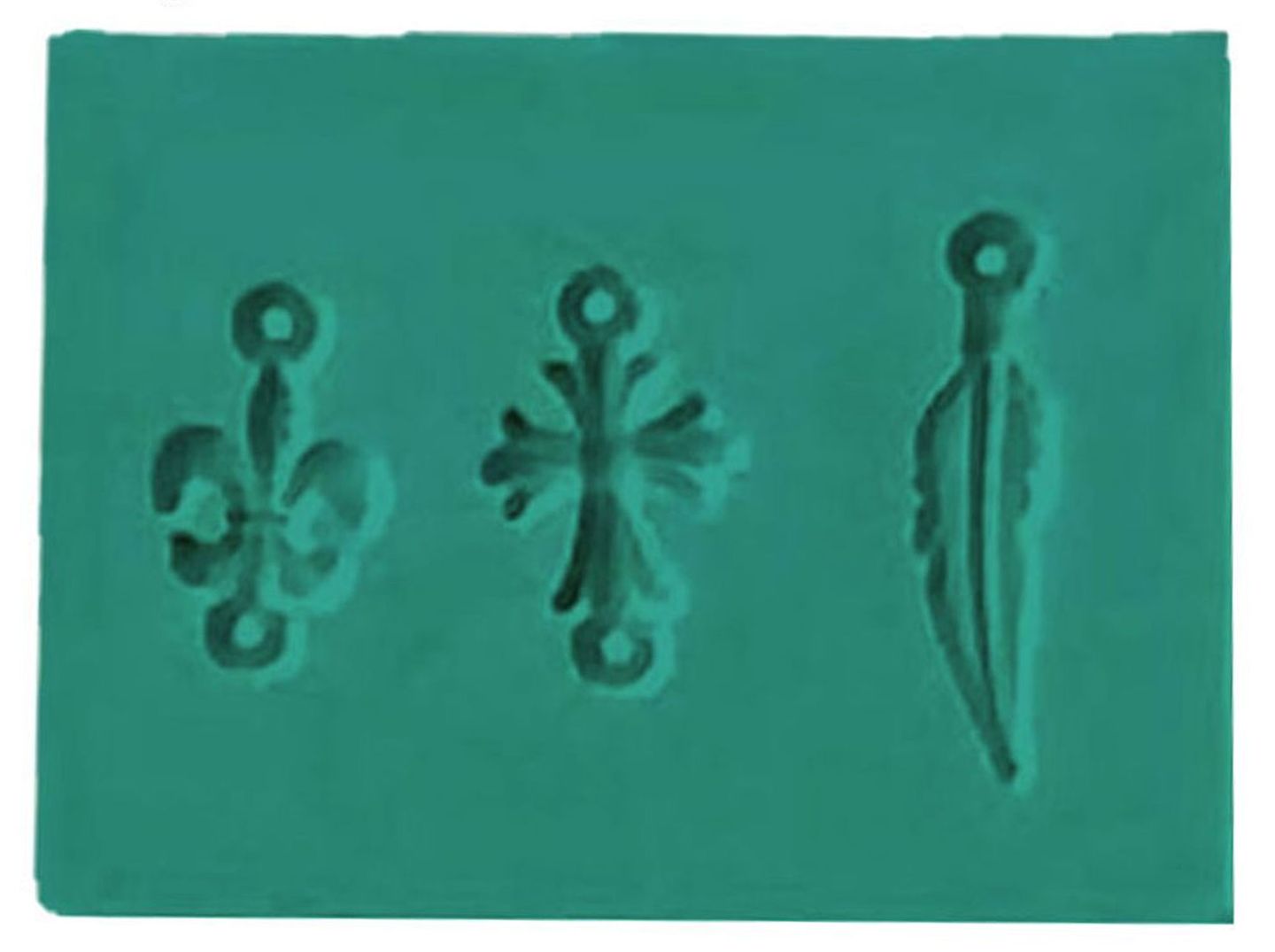 This assorted silicone pendant mold has three unique patterns that resemble a trefoil charm, a cross, and a feather. By just using this silicone mold, you can replicate those designs in your PMC or metal clay jewelry like pendants or mobile phone charms. It is a non-stick mold, so you can easily remove the metal clay from the mold while duplicating those amazing patterns.