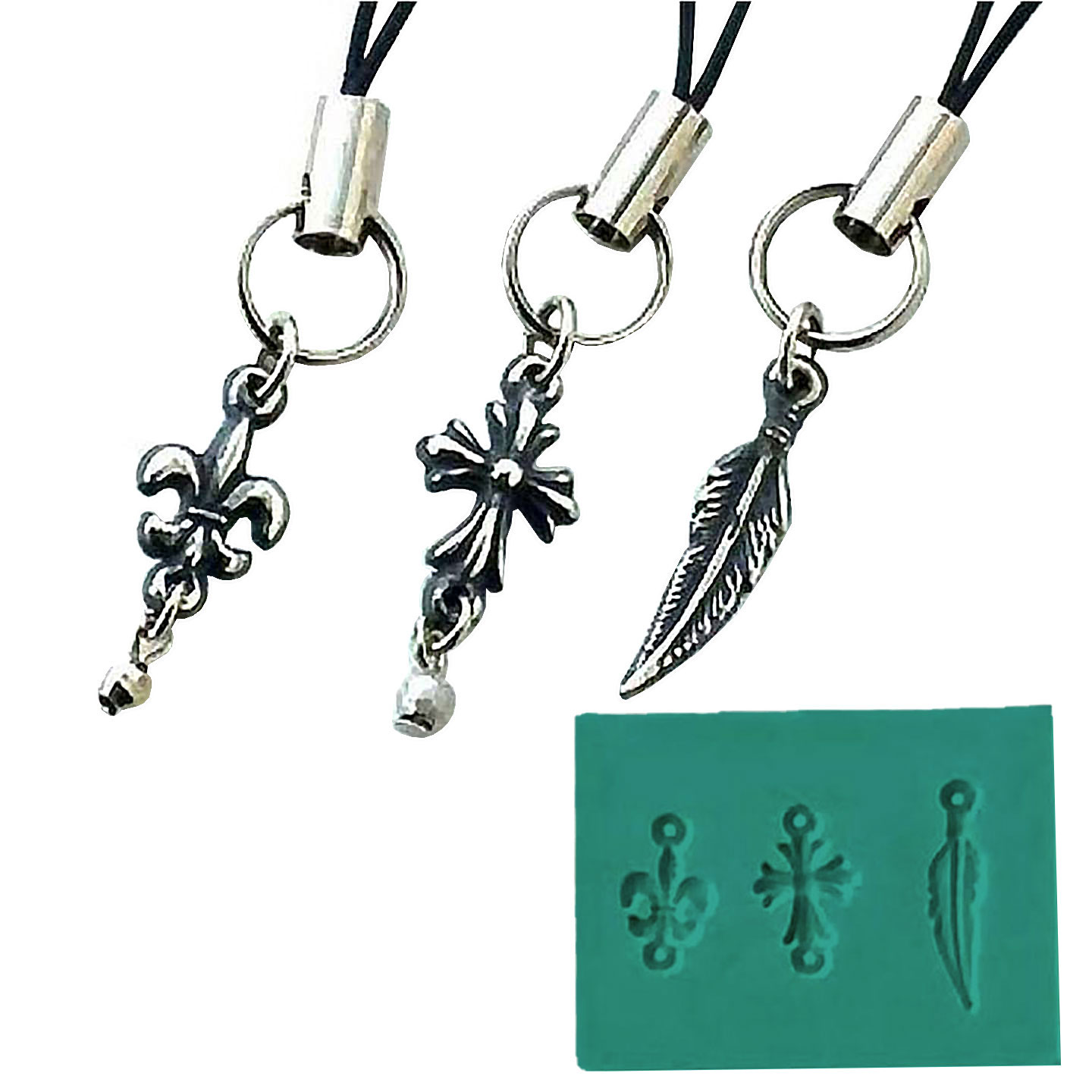 PMC Precious Metal Clay Silver 3-in-1 Molding Tool Cross Feather Pendant Silicone Mold, for Jewelry Making