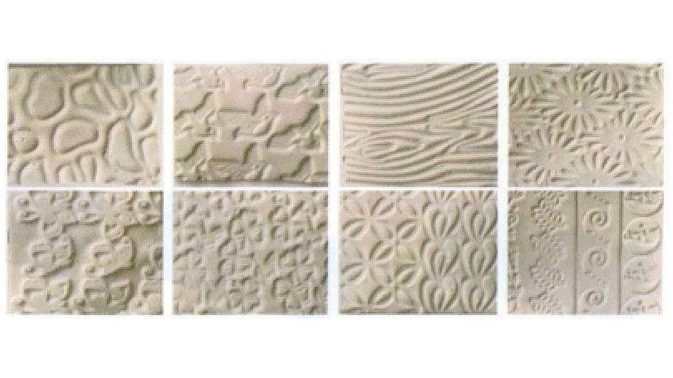 PMC Precious Metal Clay Silver 8 Piece Embossed Patterned Plastic Textured Tiles, for Texturing & Decorating Silver Clay Jewelry