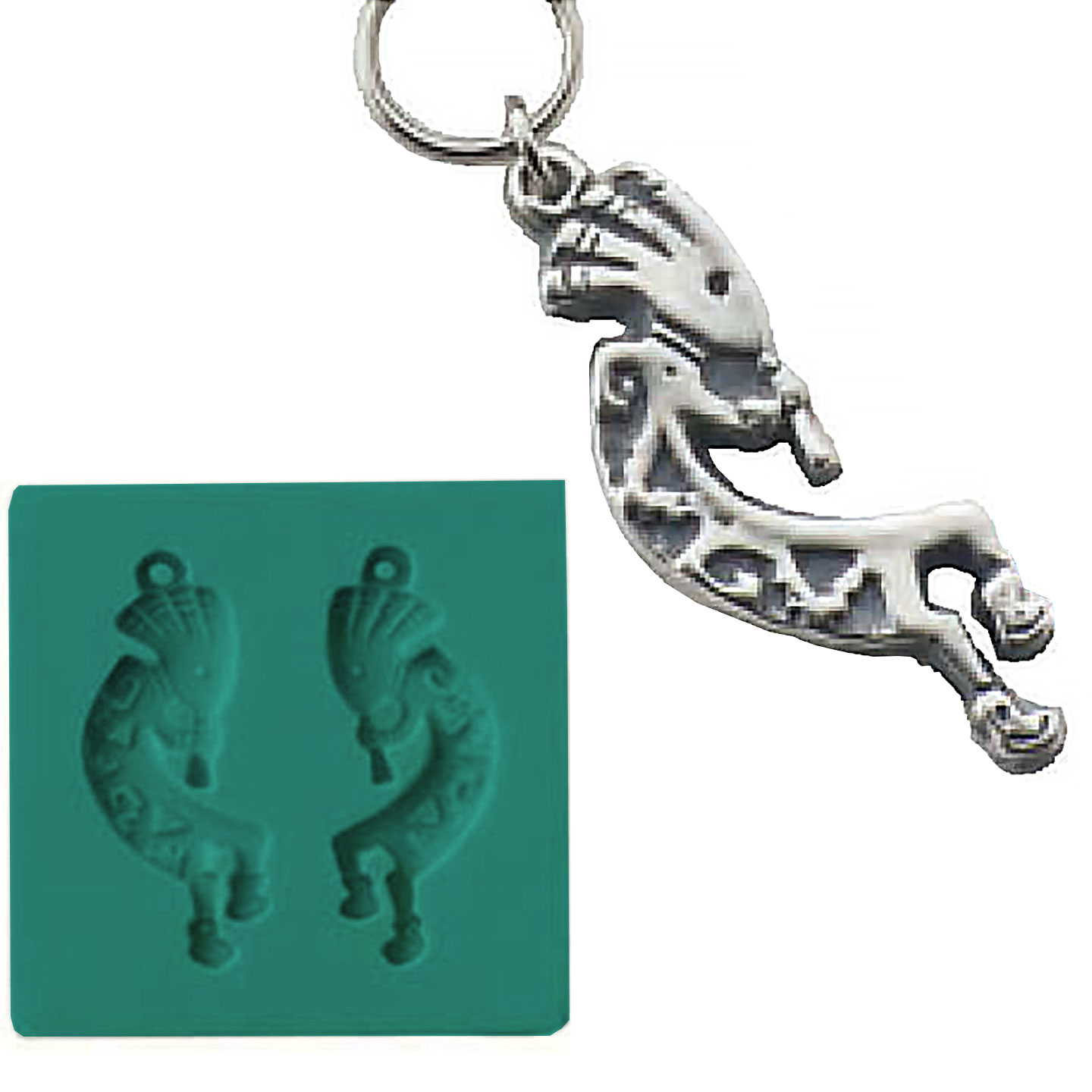 PMC Precious Metal Clay Silver Molding Tool 15mm x 38mm Silicone Kokopelli Shaped Pendant Push Mold, for Jewelry Making