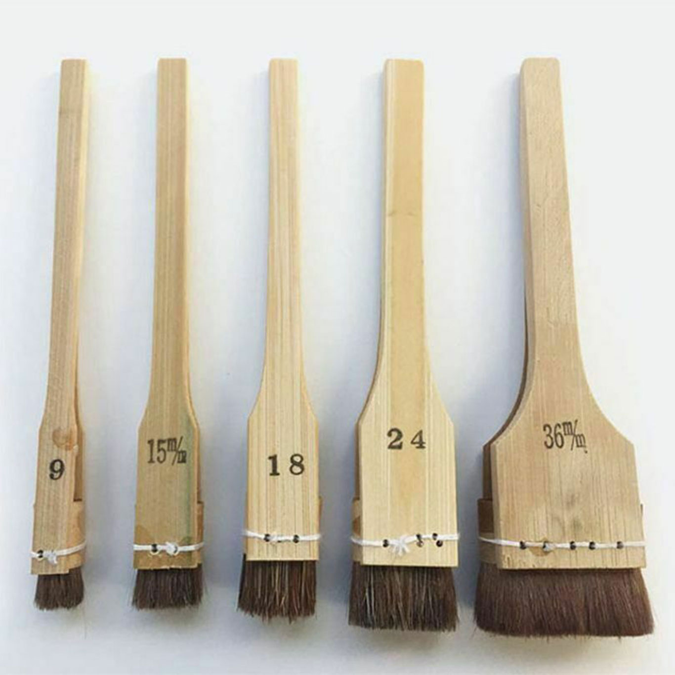 The brush head is approximately 24mm, and, with its wooden handle and carefully sewn hairbrush, you can apply paints and spread them easily and evenly. 15mm, 18mm, and 36mm brushes sold separately.