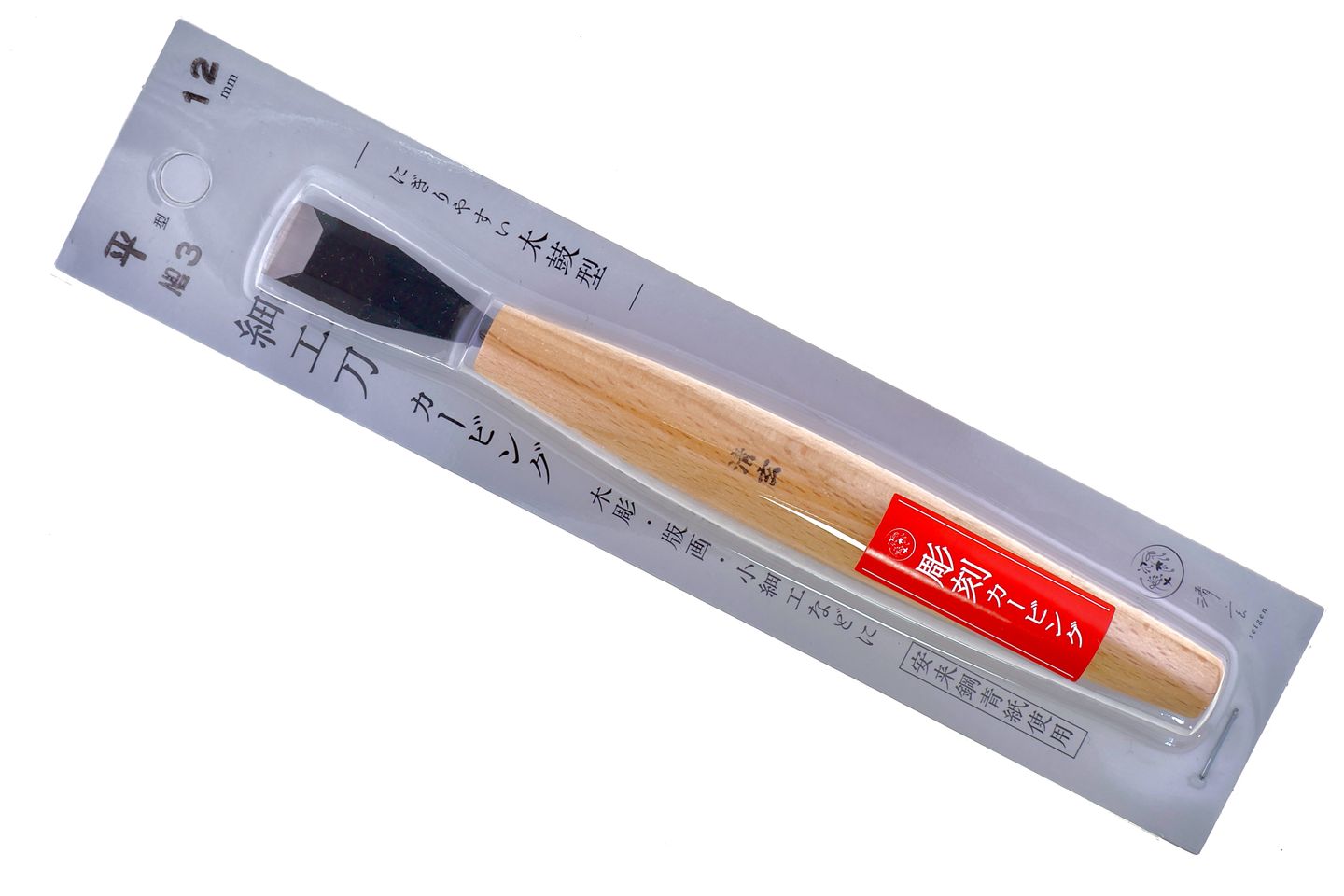 Seigen No.3 12mm Flat Wood Carving Chisel Japanese Blue Paper Steel Blade with Wooden Handle for Sculpting, Relief and General Woodworking