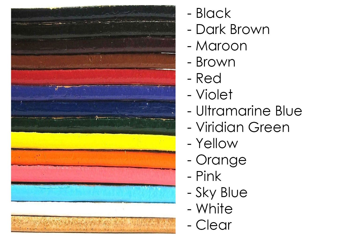 The enamel is suitable for projects such as wallets, briefcase pockets, handles, and cases. It is best used on edges that experience limited flexing.