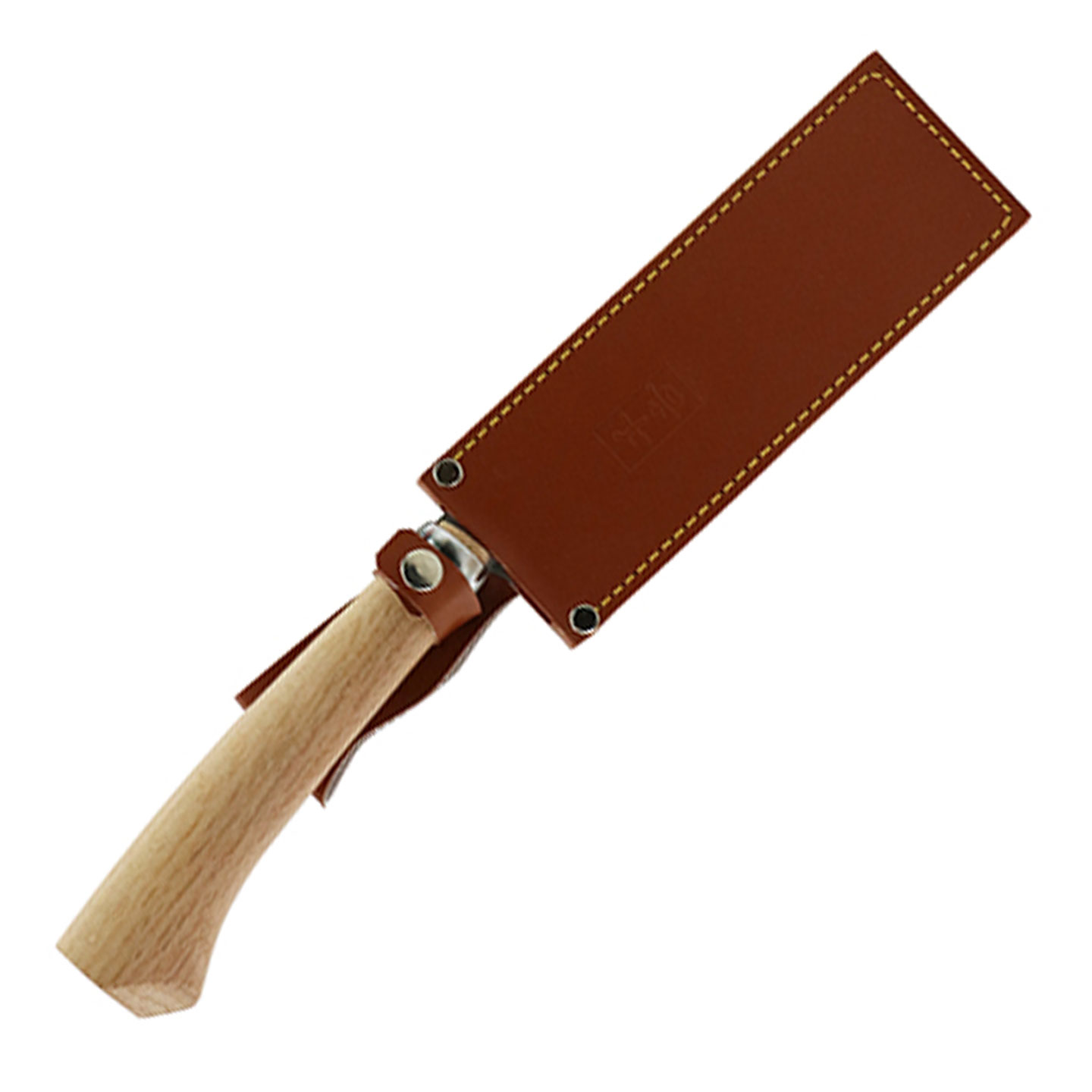 This versatile tool is useful for pruning, splitting wood and bamboo directly from the tree, as well as chopping wood. This tool comes with a blade sheath with a belt loop, making it easy to carry and safely store when not in use. Use a wooden hammer or maul—never a metal one—to split wood or bamboo.