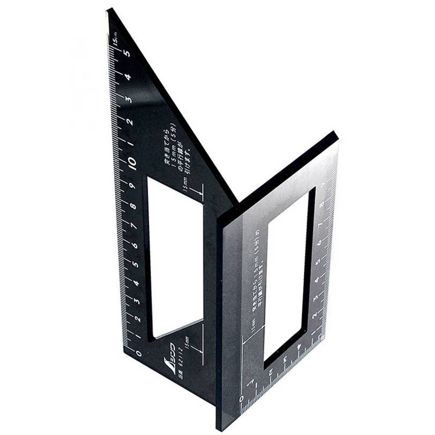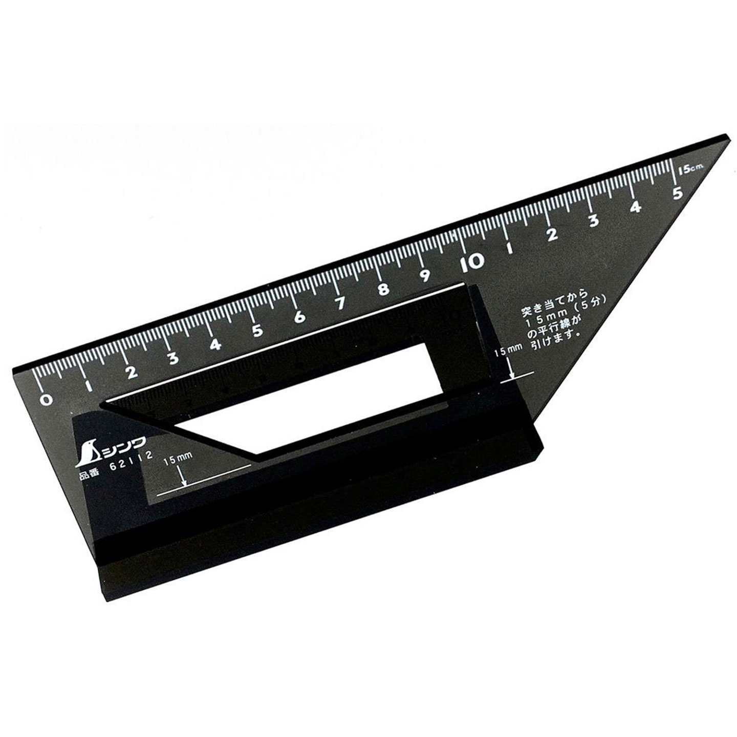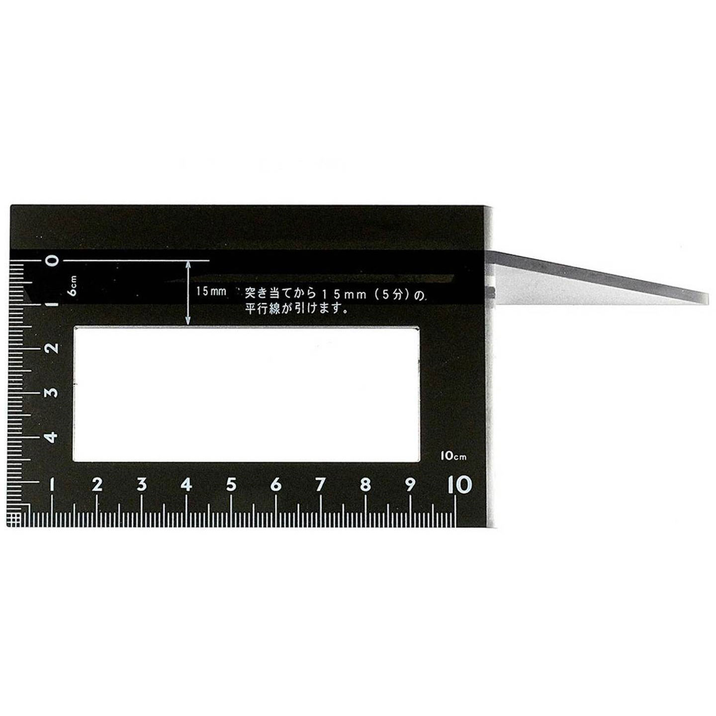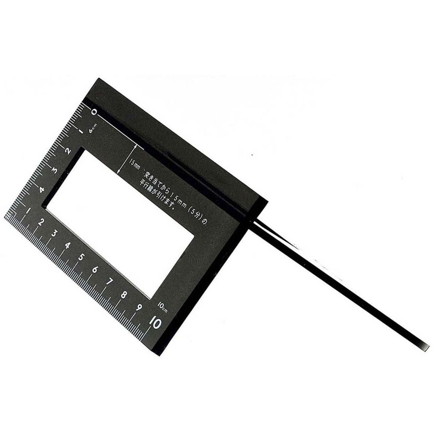 Unlike other rulers, this ruler is translucent, so you can easily see cuts and marks on your wood work under this ruler. This ruler has a measurement of 15cm on the top, 10 cm on the bottom part, and 6cm on the side. Quality made in Japan.
