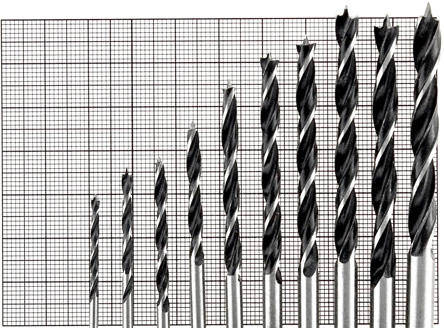 This Japanese made, high-quality set of ten drill bits are great for drilling holes in wood, plywood, compound panels, and resin. This product is an essential tool for any do-it-yourself projects or professional crafter. This set of drill bits is made from high-quality carbon steel and is designed for accurate drilling. The drill bits are centred on a round hole to resist breakage.