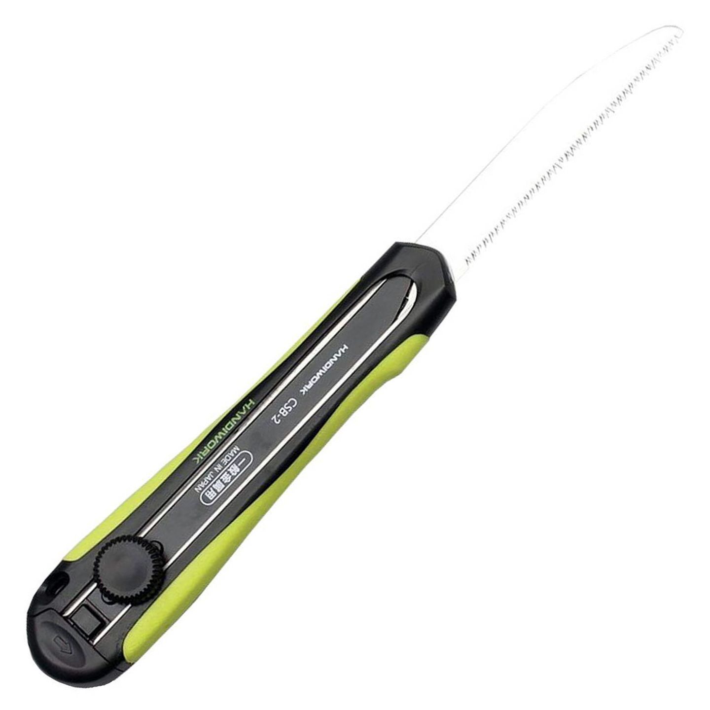 Takagi's compact cutter-type saw comes with two blades, one is a saw blade for wood and plastic, the other a hacksaw blade for general metal. One of the blades may be used to cut small pieces of aluminum, brass, veneer, PVC tubing, and other materials. By adding a commercially available L-type cutter blade, it may also be used as a thick cutter. The blades are made of carbon steel, a metal alloy made up of iron and carbon that is extremely durable, long-lasting, robust, and shock-resistant. The ergonomic handle is constructed of thermoplastic rubber, which is lightweight, abrasion resistant, and dimensionally stable at low temperatures.