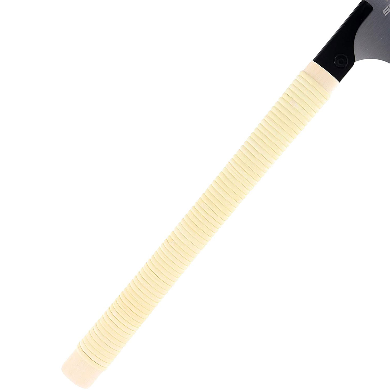 The sharpness and durability of a tensioned high carbon steel blade are combined with the comfort of a wrapped wooden handle in this woodworking tool. Suitable for cutting various kinds of wood.