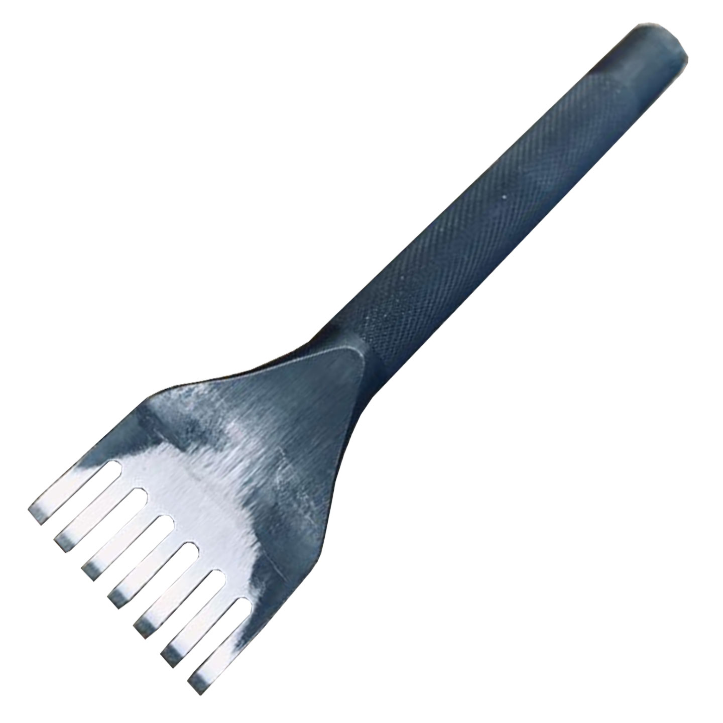 Produce slits of even sizes and spaces suitable for lacing or stitching leather with this 7 prong thonging chisel. The whole tool is tempered and the handle is non-slip, great for leathercraft.