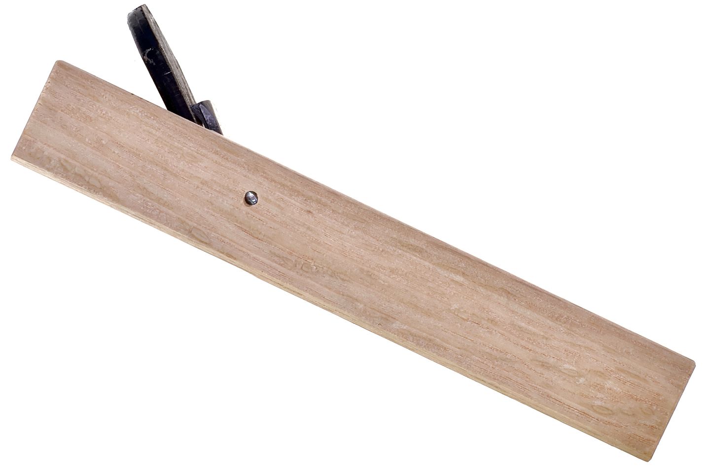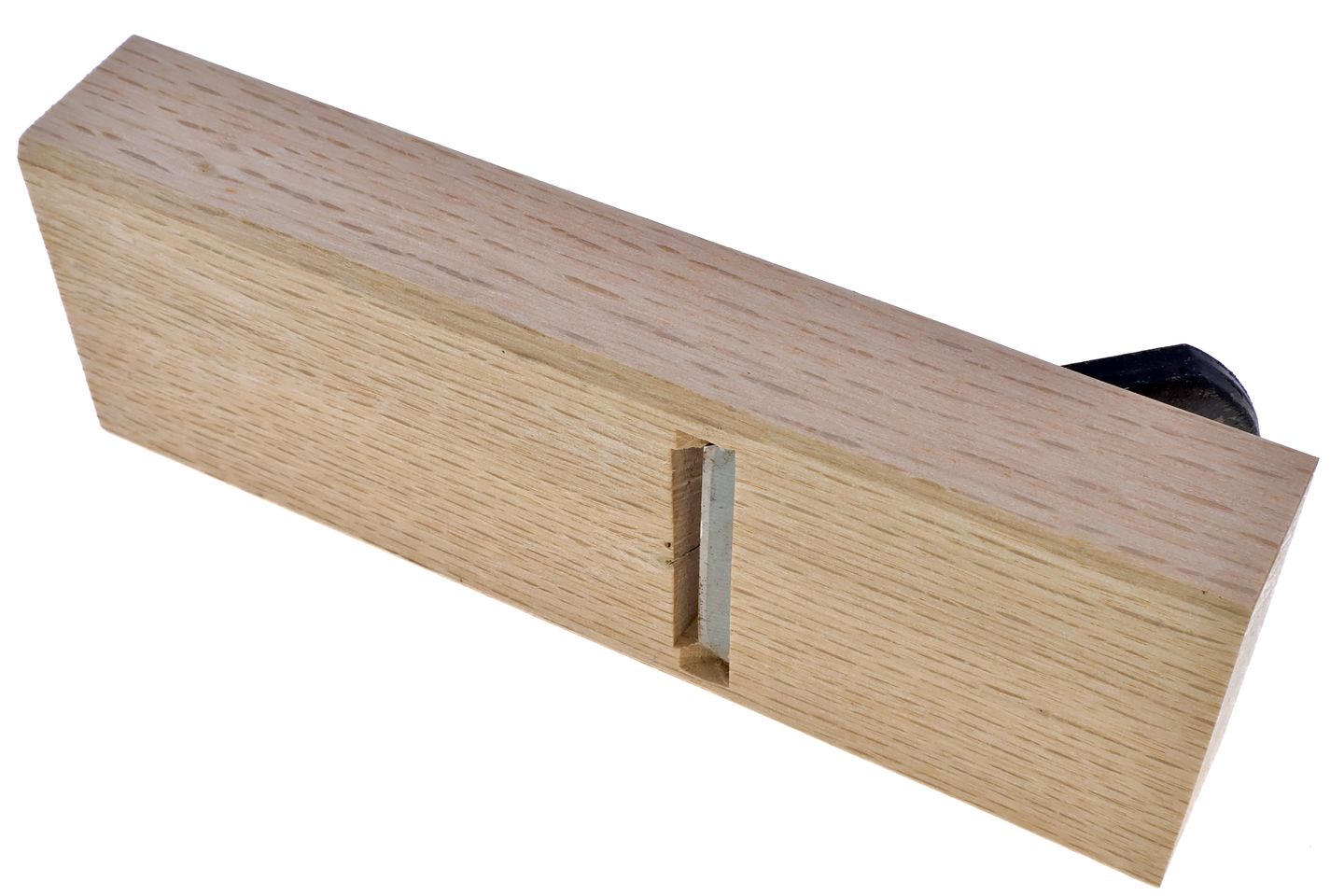 To use, tap the blade lightly with a small hammer to adjust its depth and ensure it sits flush and evenly against the dai (wooden body). Secure the blade with the provided chip breaker and test on scrap material. Draw the plane towards you using both hands, applying even pressure for consistent shaving. Adjust blade depth and angle for desired cut thickness.