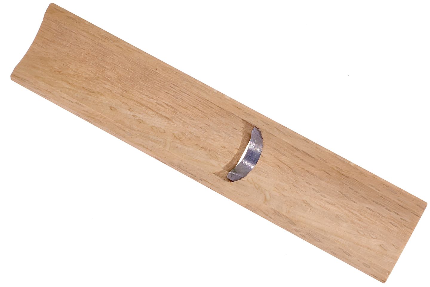 Cleanly shapes grooves and hollows in wood, this curved round plane offers precision control when working on inlays, channels, or relief carving.