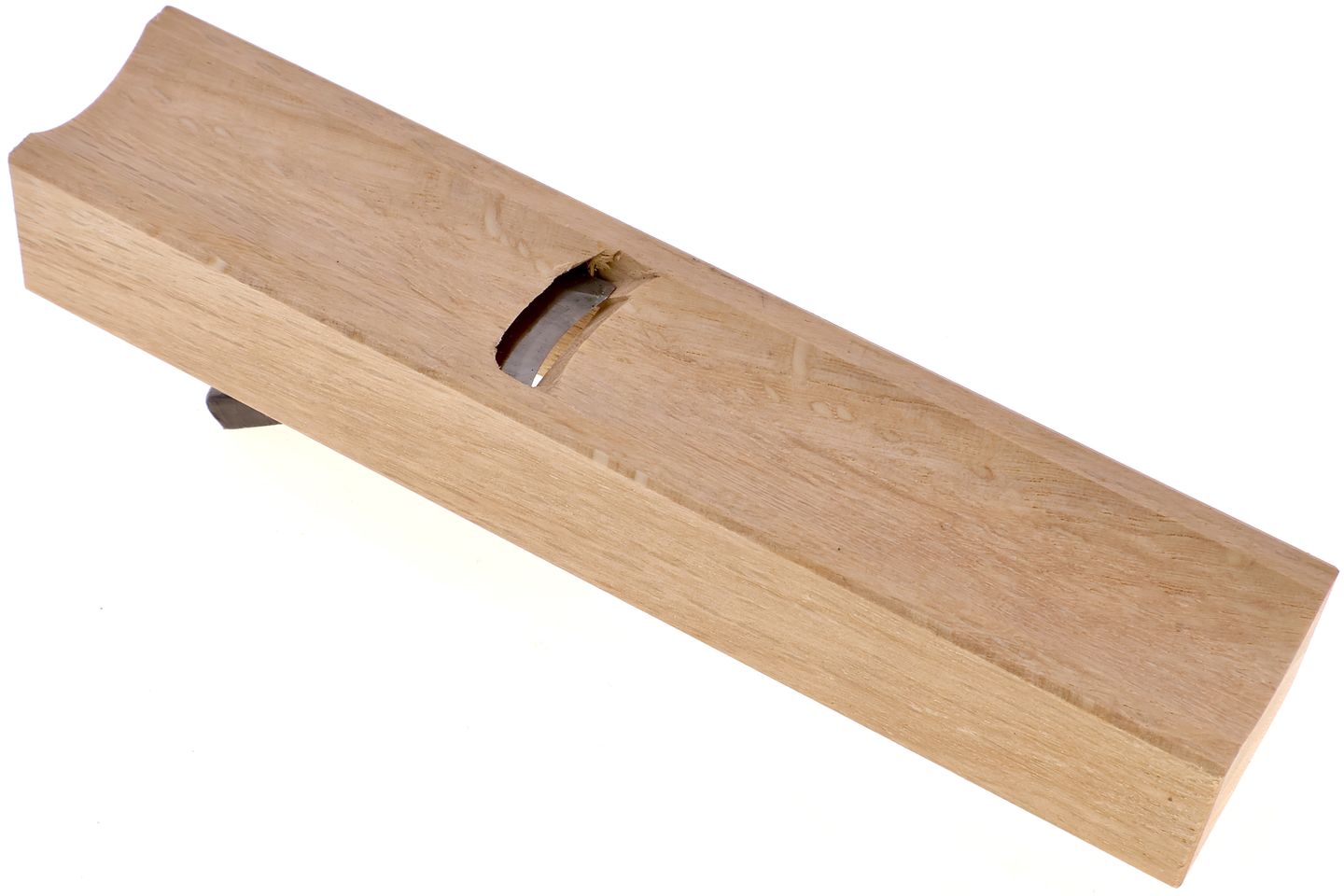 To use, brace the plane with a firm grip and guide it along the concave area to be shaped. Keep steady pressure and let the curved blade engage the material gradually, adjusting angle and force to suit the wood’s grain and hardness.