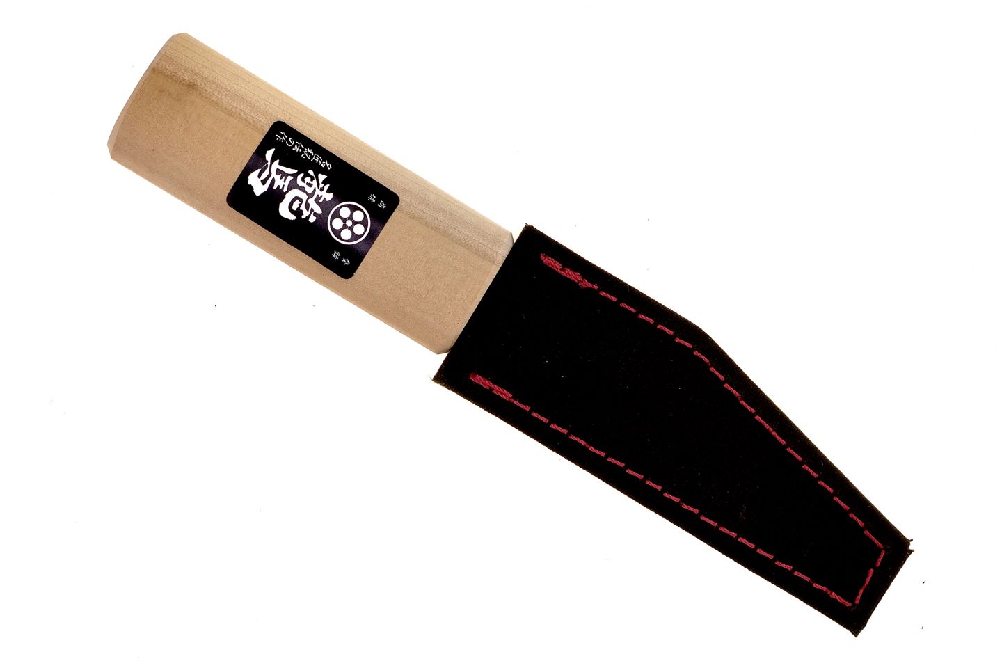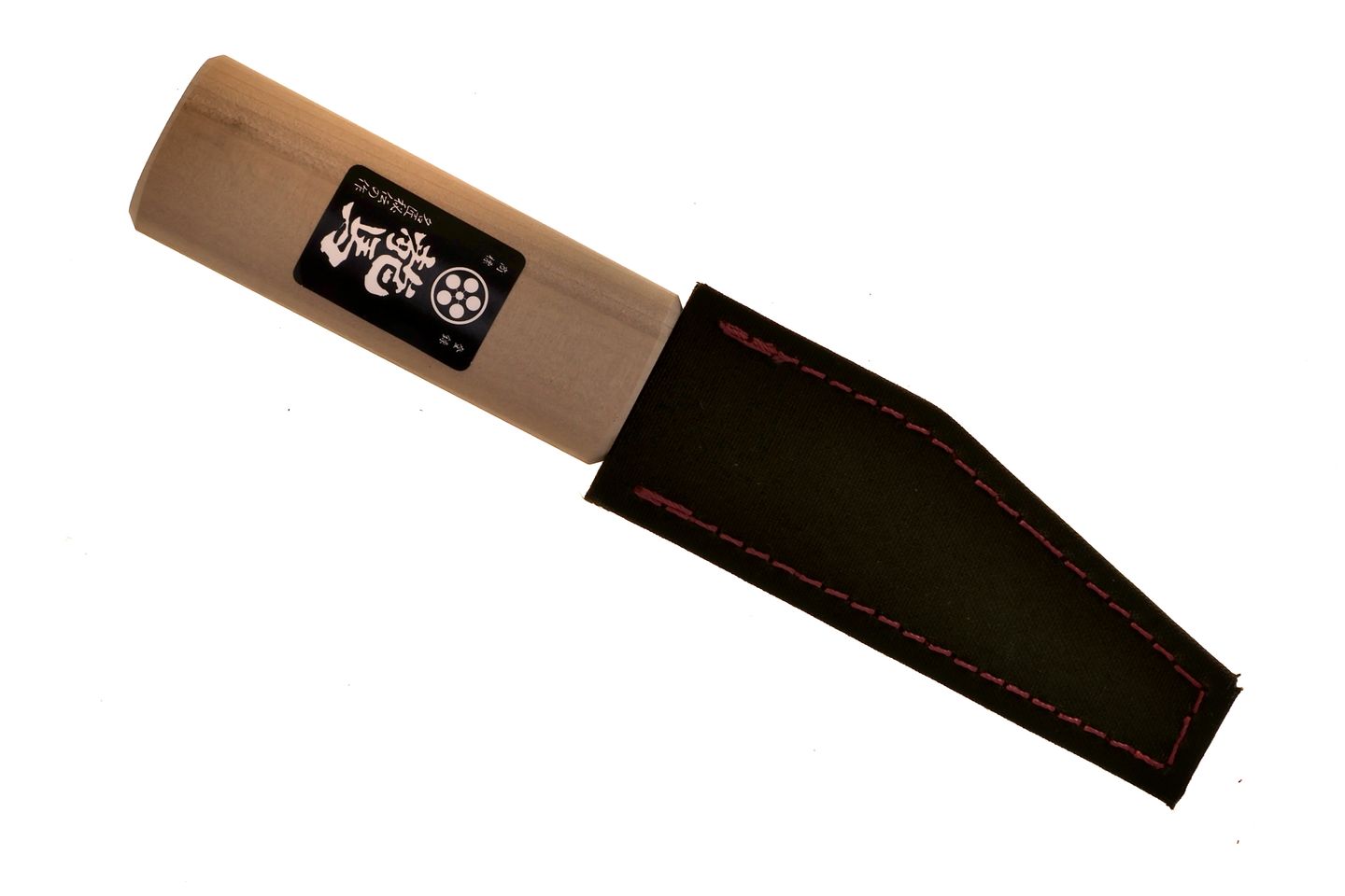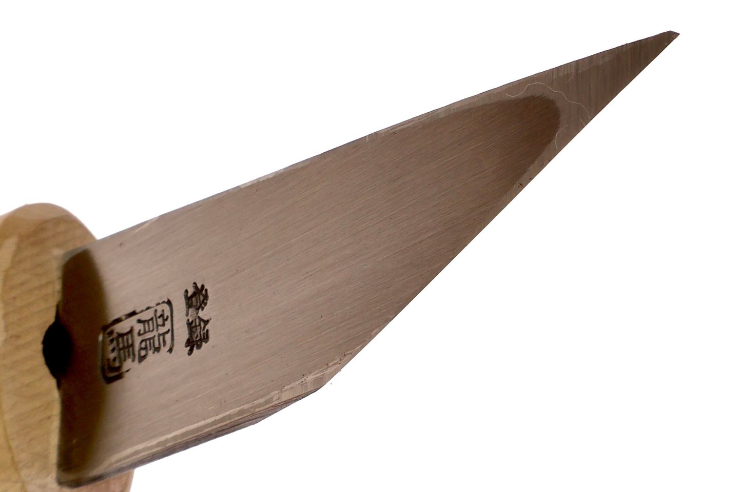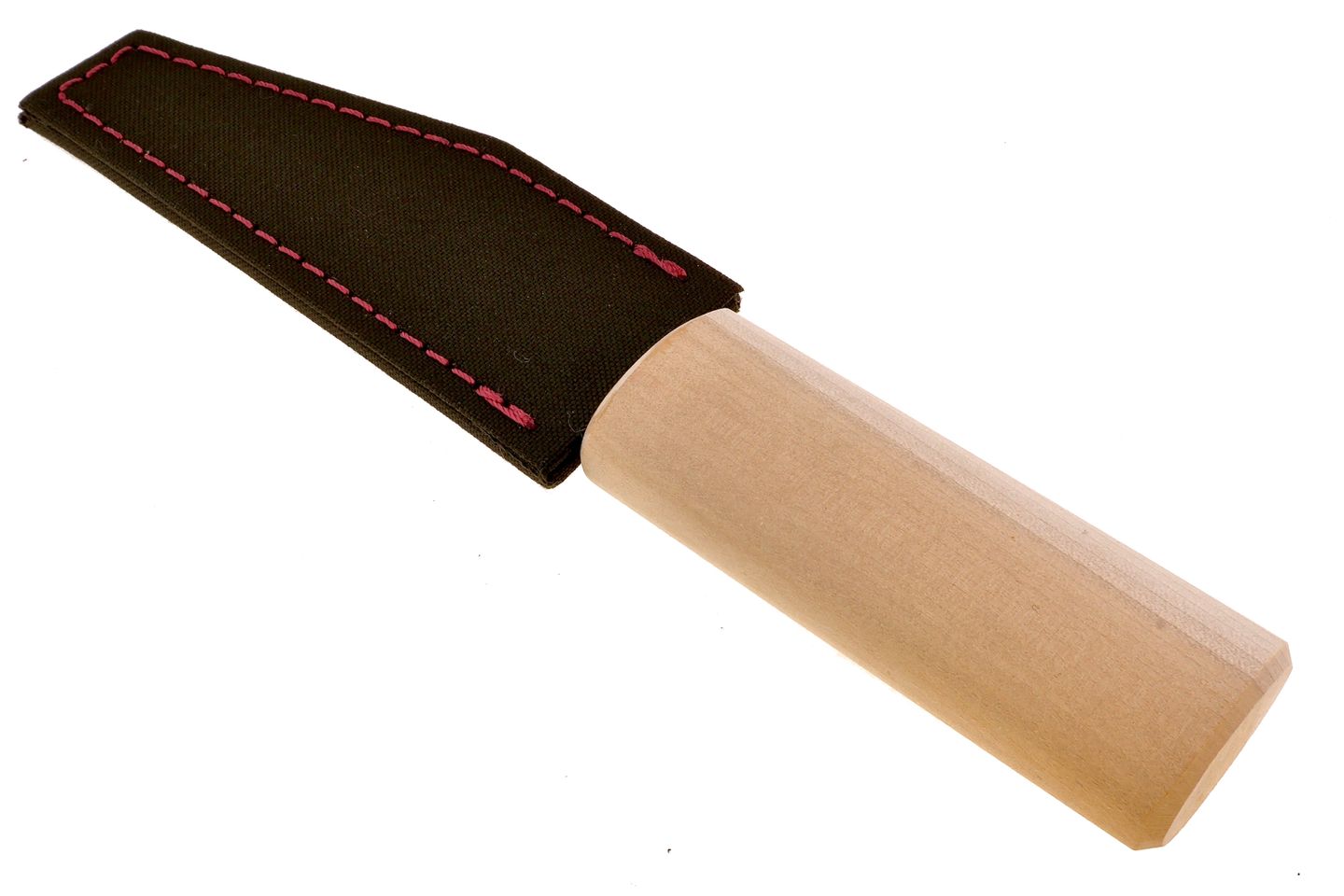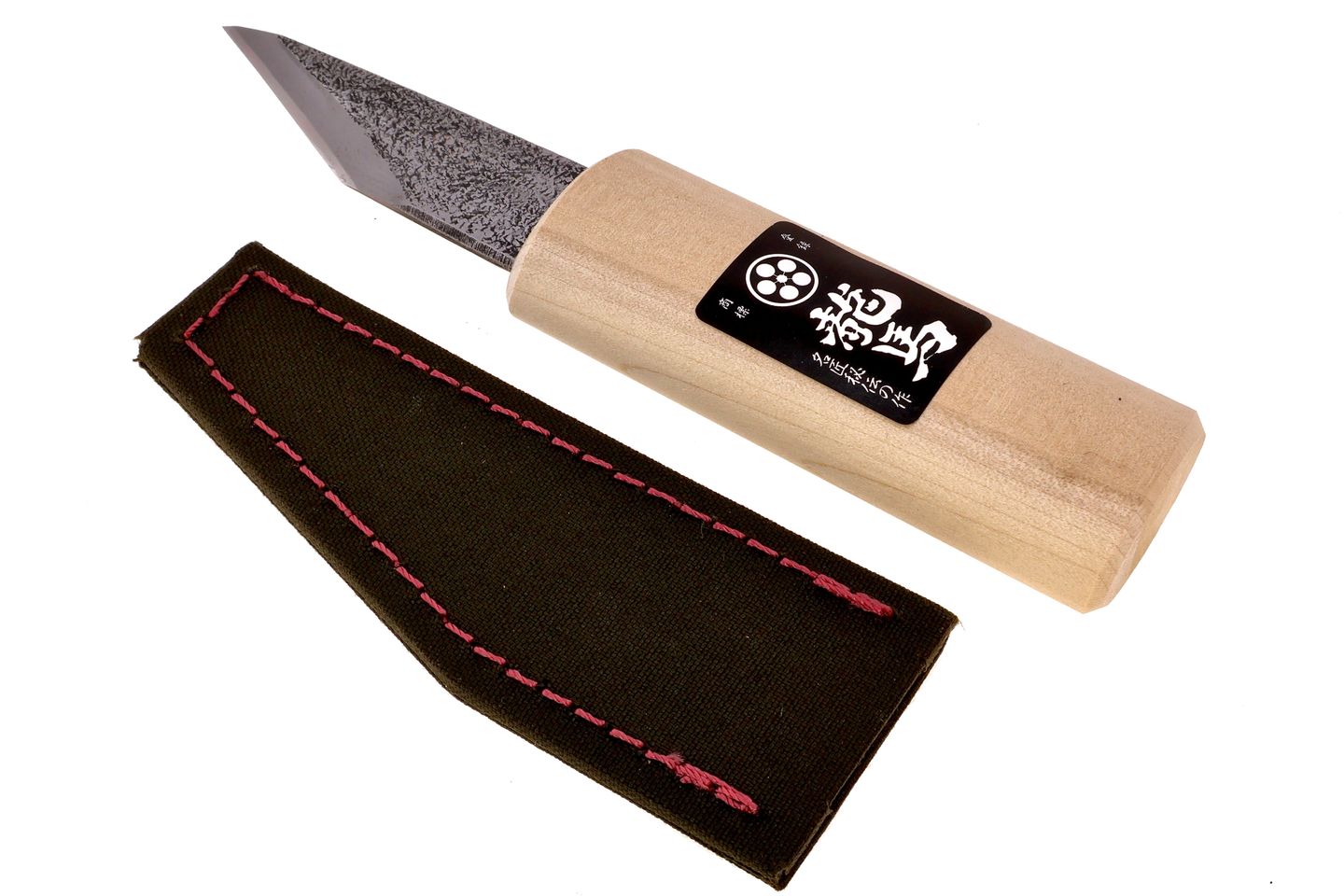 Made for left-handed people, this Japanese yokote knife is not only for whittling and carving wood, but can also be used for bamboo crafts and as a utility knife. This knife has a short wooden handle that makes it easier to control the blade and provides comfort during a long period of use. This tool also includes a fabric sheath to safeguard the blade and avoid any incident when not in use.