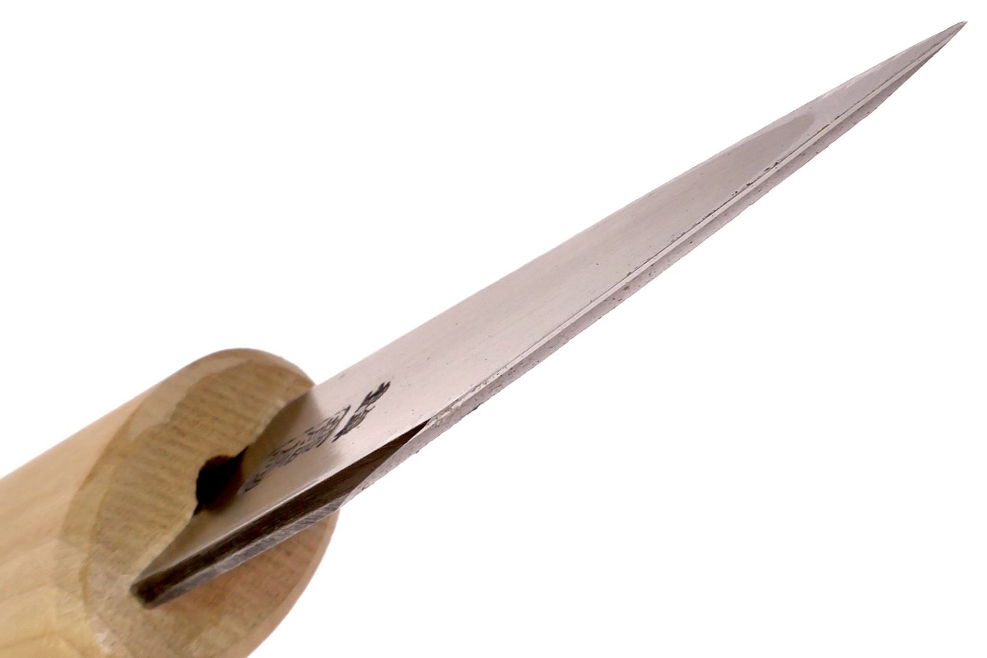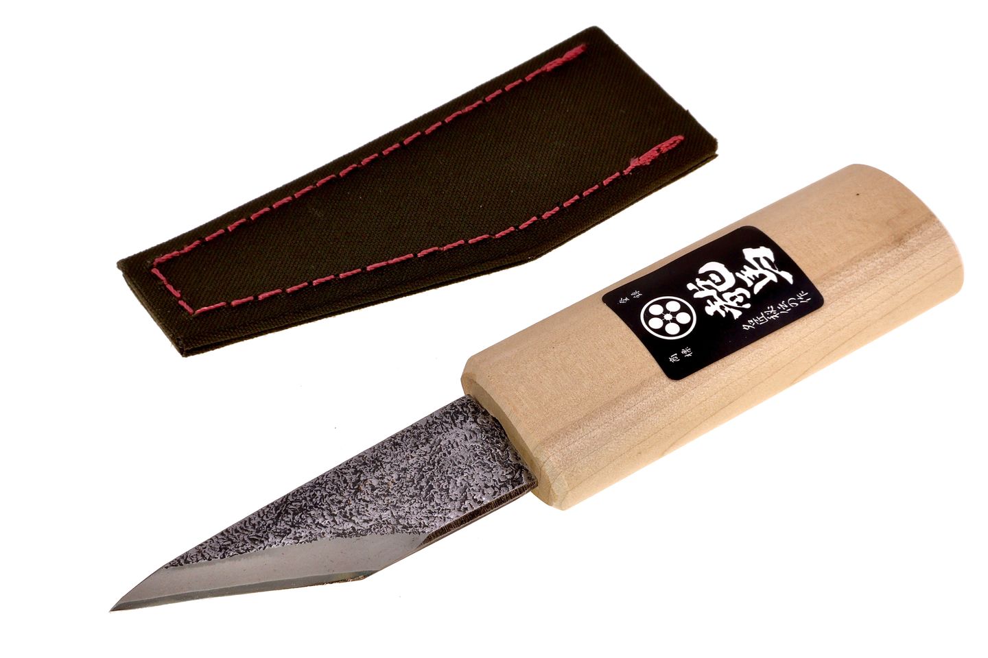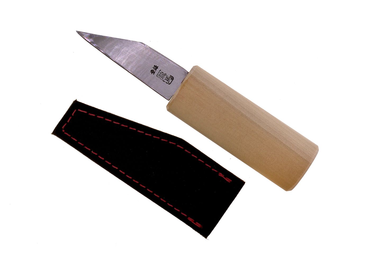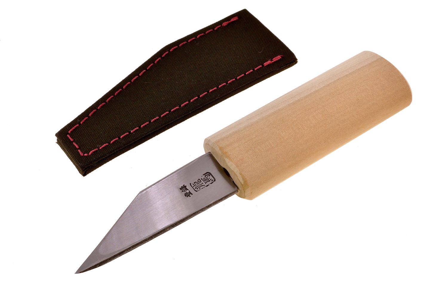This Japanese yokote knife is made for left-handed people and can be used for bamboo crafts, whittling, and wood carving. Comes with a fabric blade sheath to safely store when not in use.