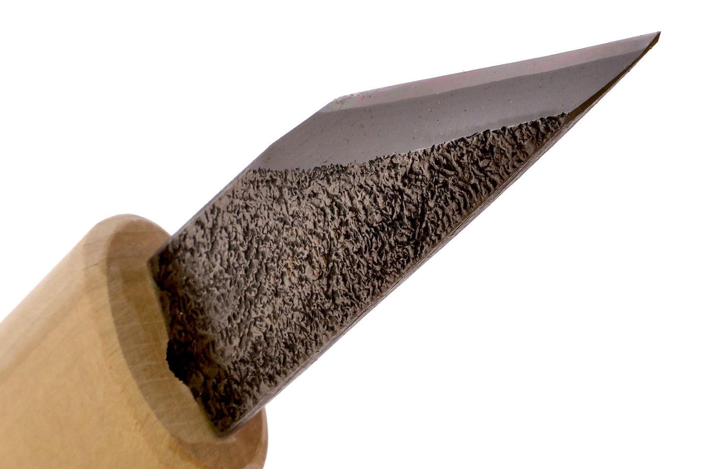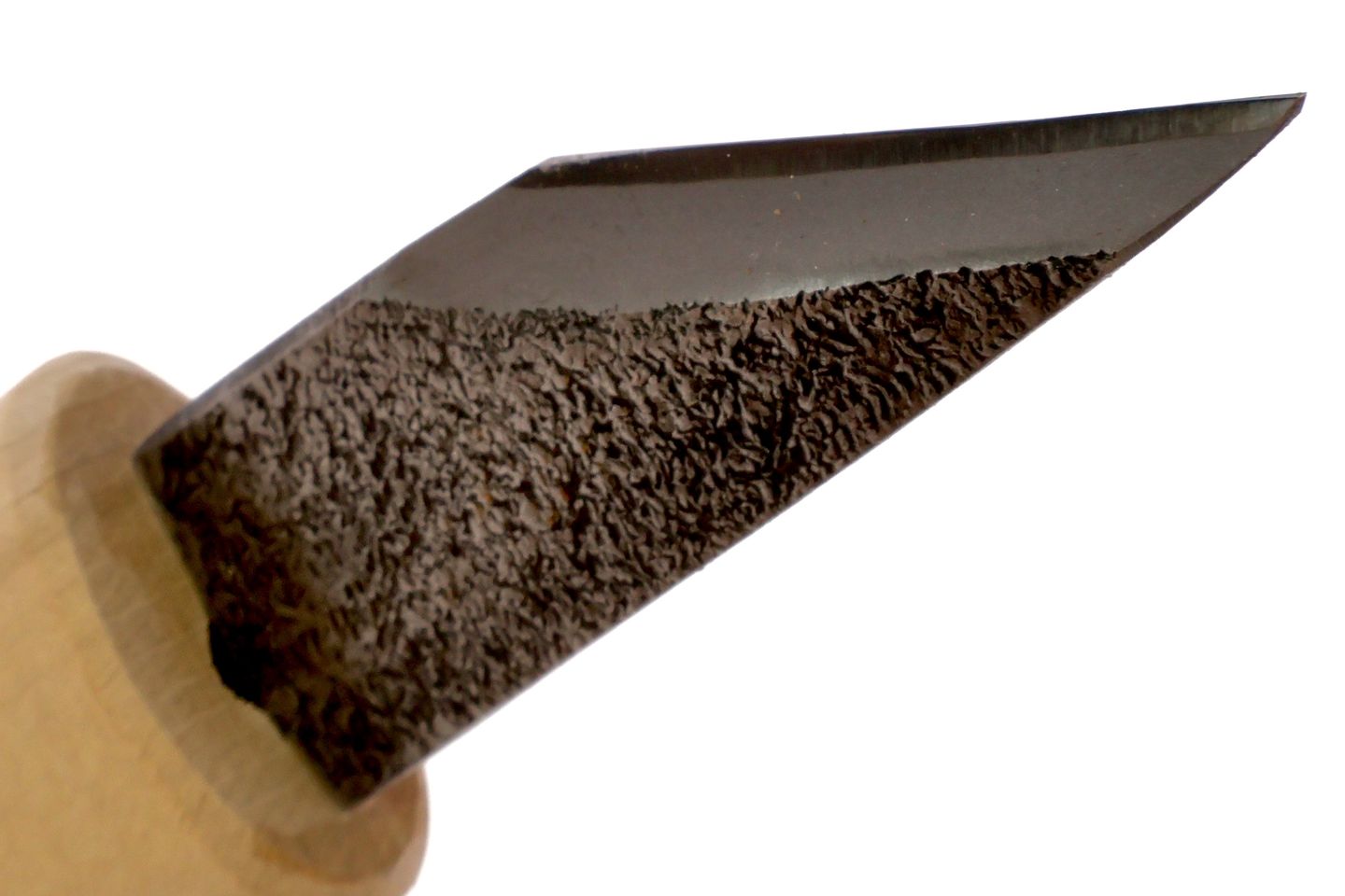 Please note: This tool's cutting edge is sharp, keep out of the reach of children. Make sure to exercise caution when using and always cut away from yourself, with the bevel of the knife facing away from the wood, to avoid injury.