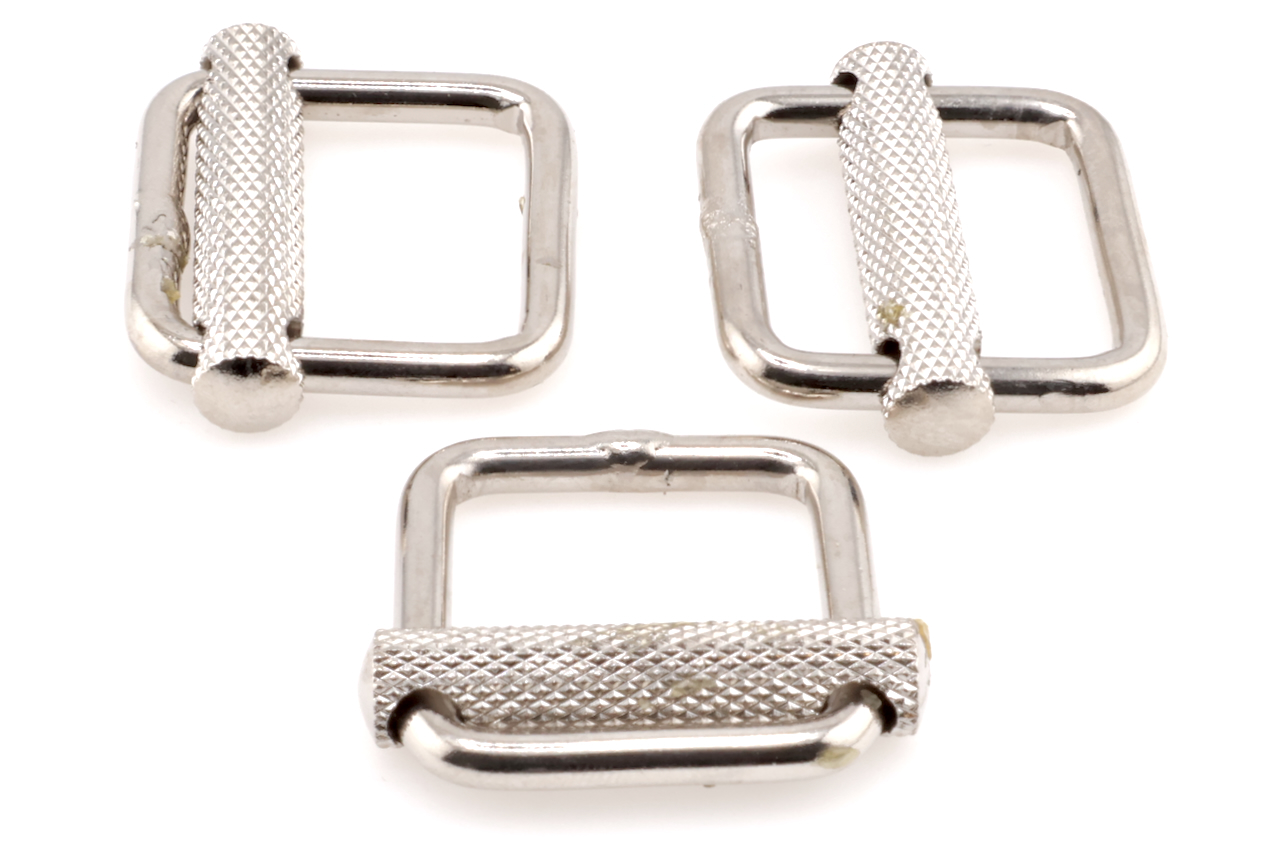 Yanagiba Leathercraft Hardware 3 Piece Set 20mm Silver Strap Adjuster 28mm x 33mm, with Textured Slider, for Adjusting Straps