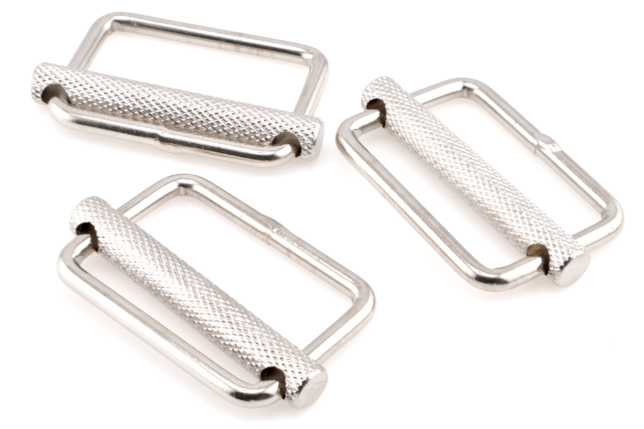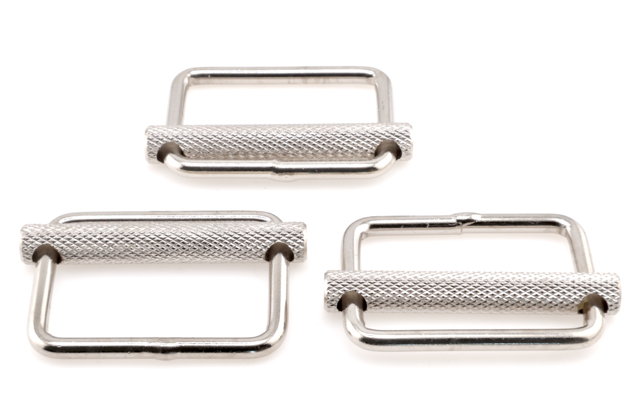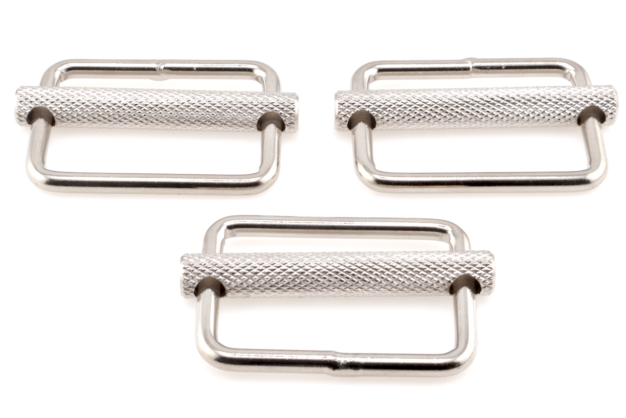 Yanagiba Leathercraft Hardware 3 Piece Set 40mm Silver Strap Adjuster 35mmx55mm, with Textured Slider, for Adjusting Straps