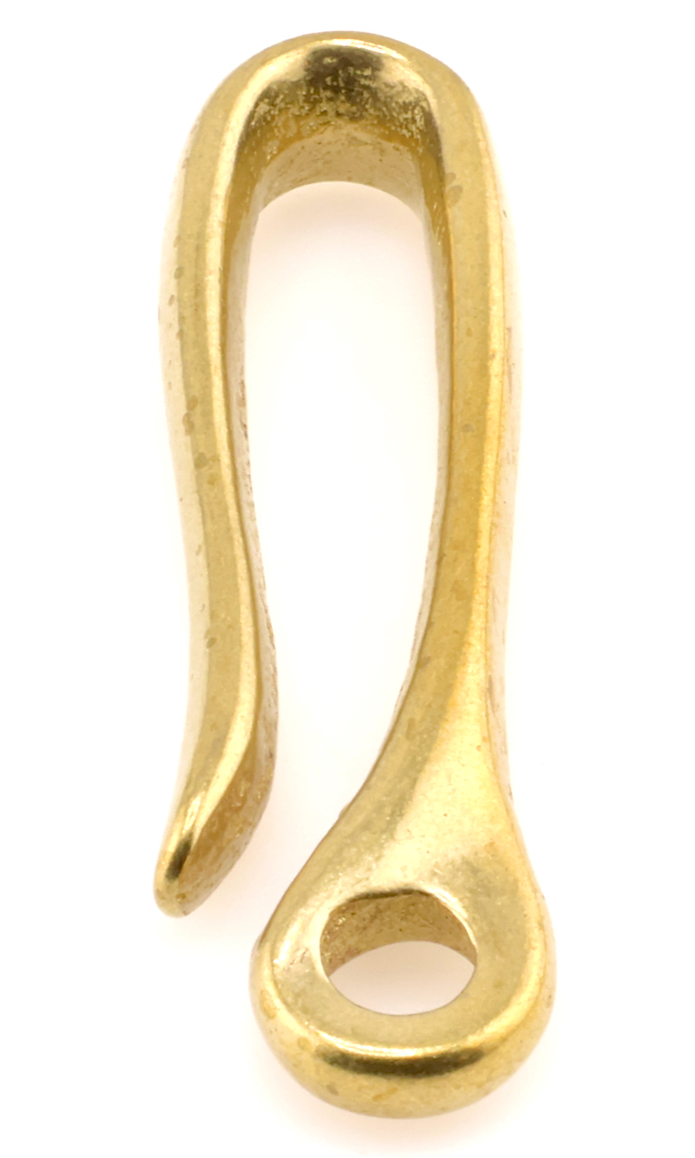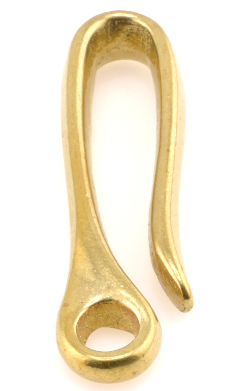 This solid brass hook is great for hooking your keychain or wallet lanyard to your belt. This hook is among the sturdiest we have, the hole is 6.5mm in diameter.