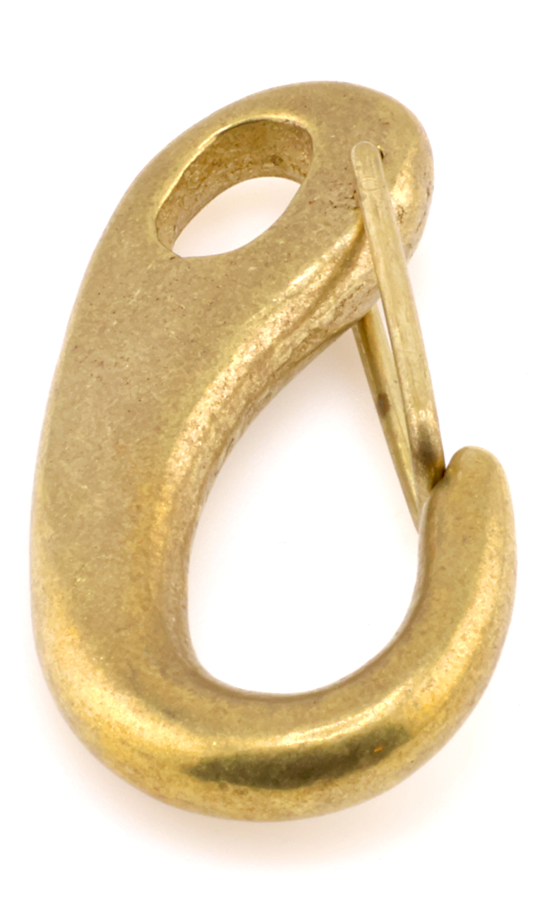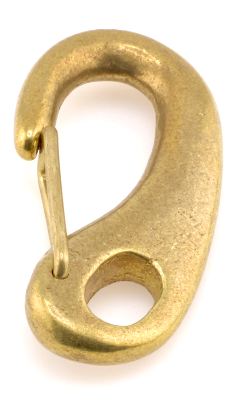 This spring link is an excellent way for securely linking your hardware and straps. This tough piece of hardware is excellent for linking hardware, such as eyelets, rings and links, together. Made of solid brass, this tough piece of hardware will not bend or give way even under heavy day-to-day use. The closed strap loop is 9mm tall and 7mm wide, whereas the openable loop is 27mm by 12mm at the widest points.