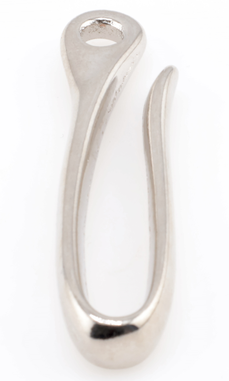 Great for hooking your wallet or keychain lanyard to your belt. This nickel plated solid brass hook is one of our heaviest and sturdiest. The hole is 6.5mm in diameter