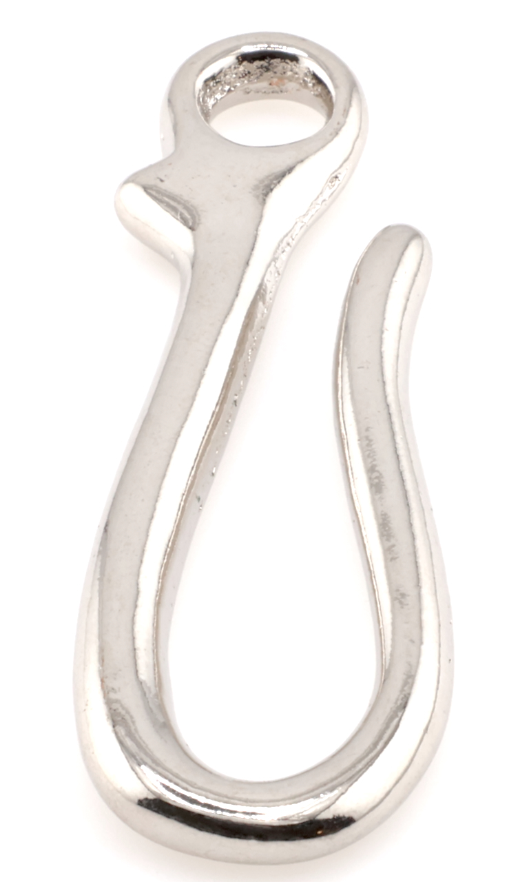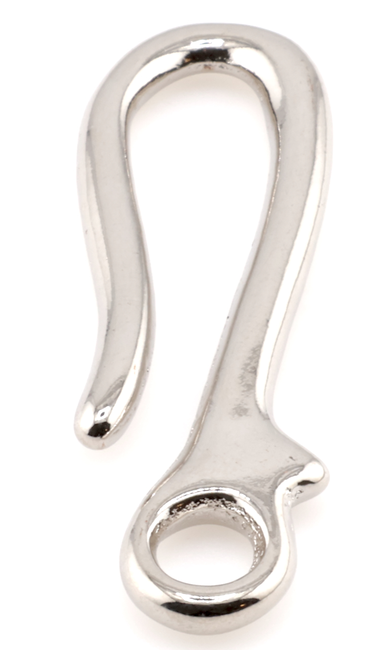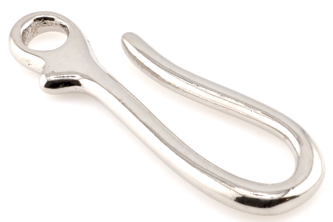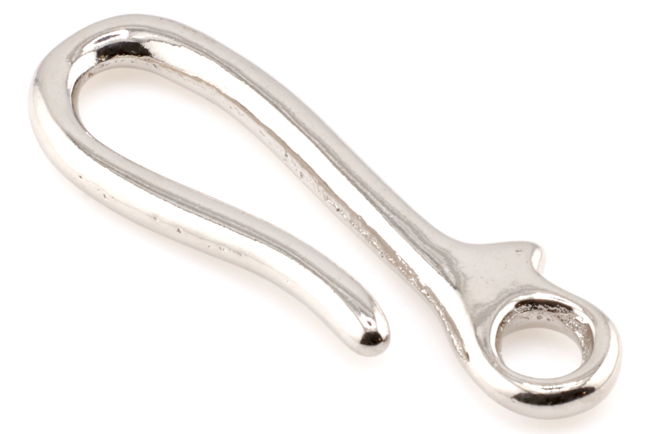 Yanagiba Leathercraft Hardware Plain Nickel Plated Brass Hook L 70mm x 24mm, for Hooking Keychain or Wallet Lanyard in Belt