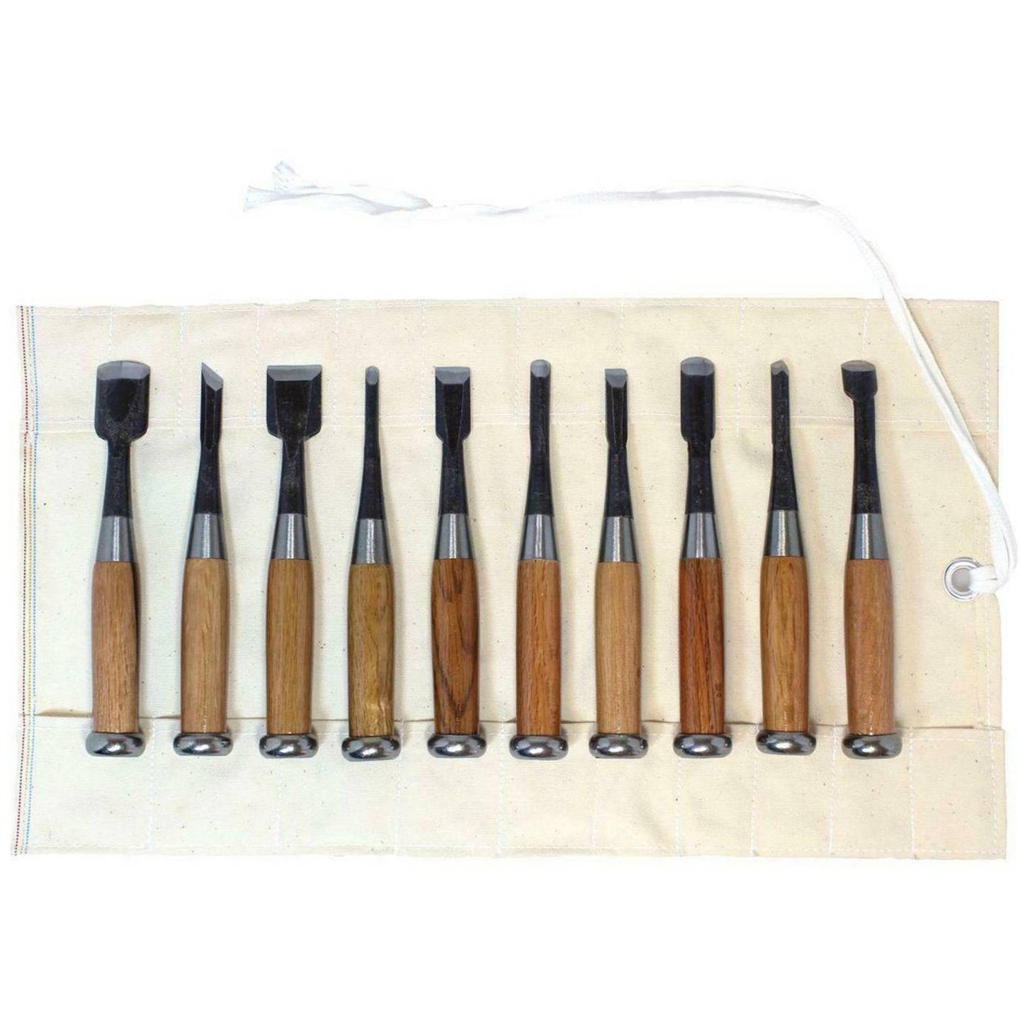Yoita Japanese Wood Carving Tools Set 10 Piece Woodworking Gouges & Chisels Kit, with Canvas Carry Satchel, for Woodcarving