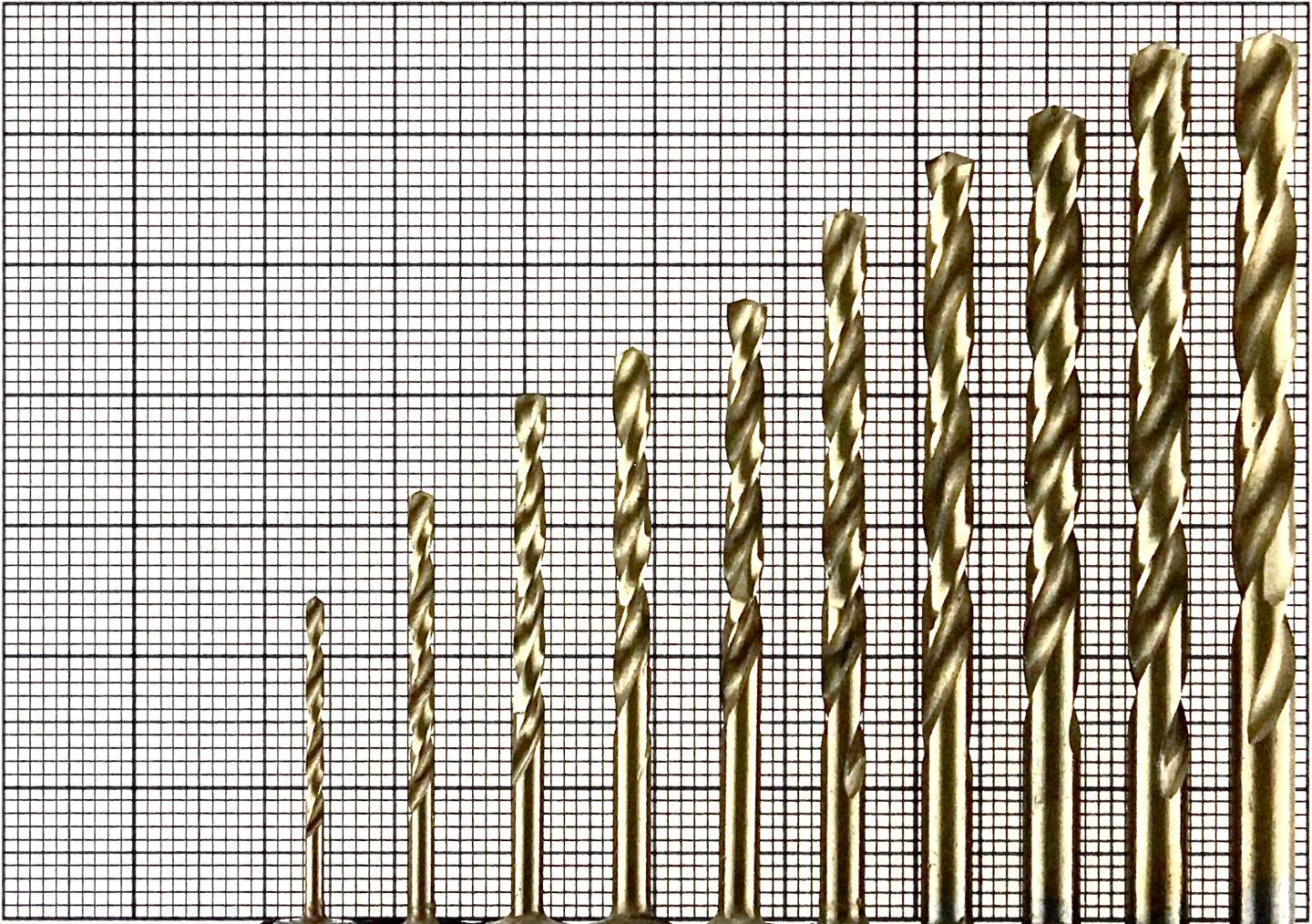 Drill with ease using this quality set, titanium coated drill bits, with a hexagonal shaft to ensure a good grip. This set includes 1.5mm, 2.0mm, 2.5mm, 3.0mm, 3.2mm, 3.5mm, 4.0mm, 4.5mm, 4.8mm, and 5.0mm drill bits.