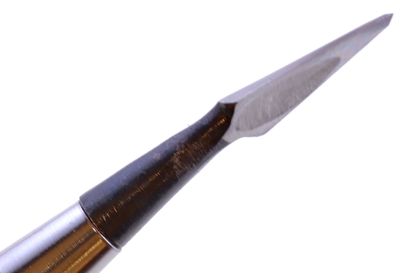 Crafted with high-quality materials, the Kiridashi features a sharp blade that allows for intricate cuts and fine detailing. Its ergonomic handle ensures comfortable use during extended periods, making it a reliable companion for various woodworking tasks. The socket chisel design is extremely durable, and will last much longer than similar knives where the tang is simply hammered into a wood handle.